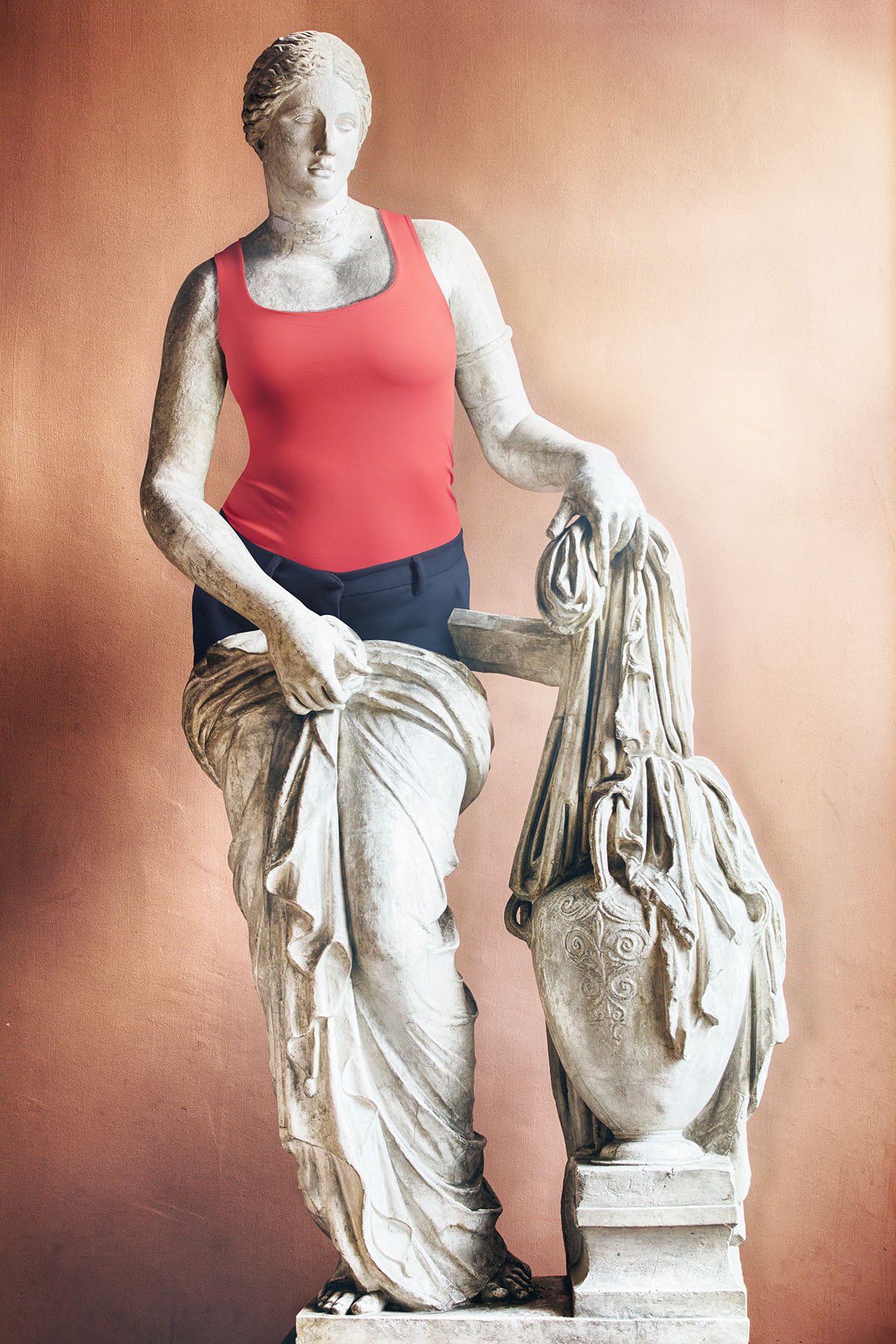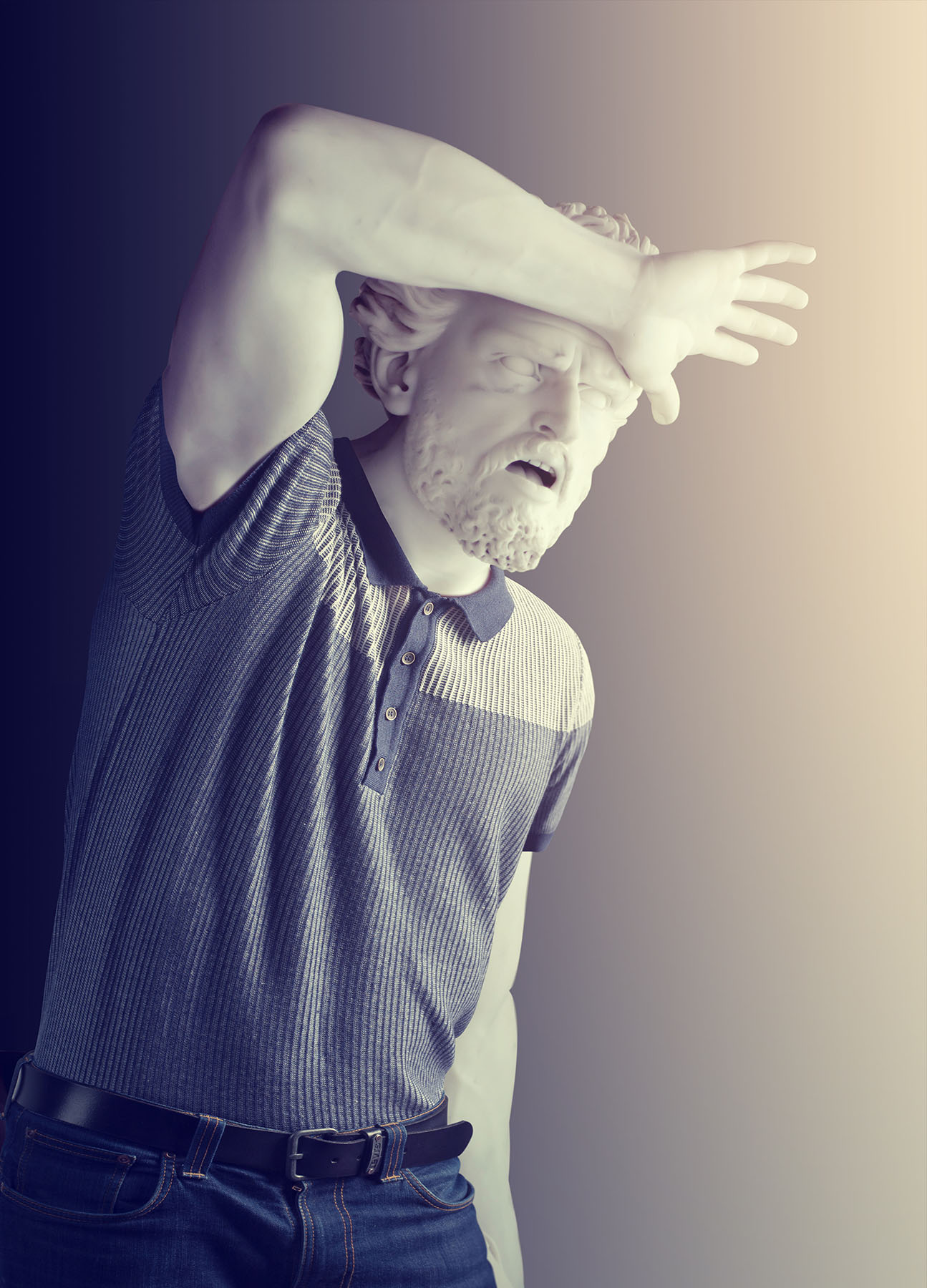 Nahé sochy z obdobia Antiky sú symbolom krásy, vznešenosti a najmä dokonalého zobrazenia proporcií ľudského tela. Avšak, francúzsky fotograf Leó Caillard dokázal túto veľkoleposť prevrátiť do moderného sveta humoru a irónie.