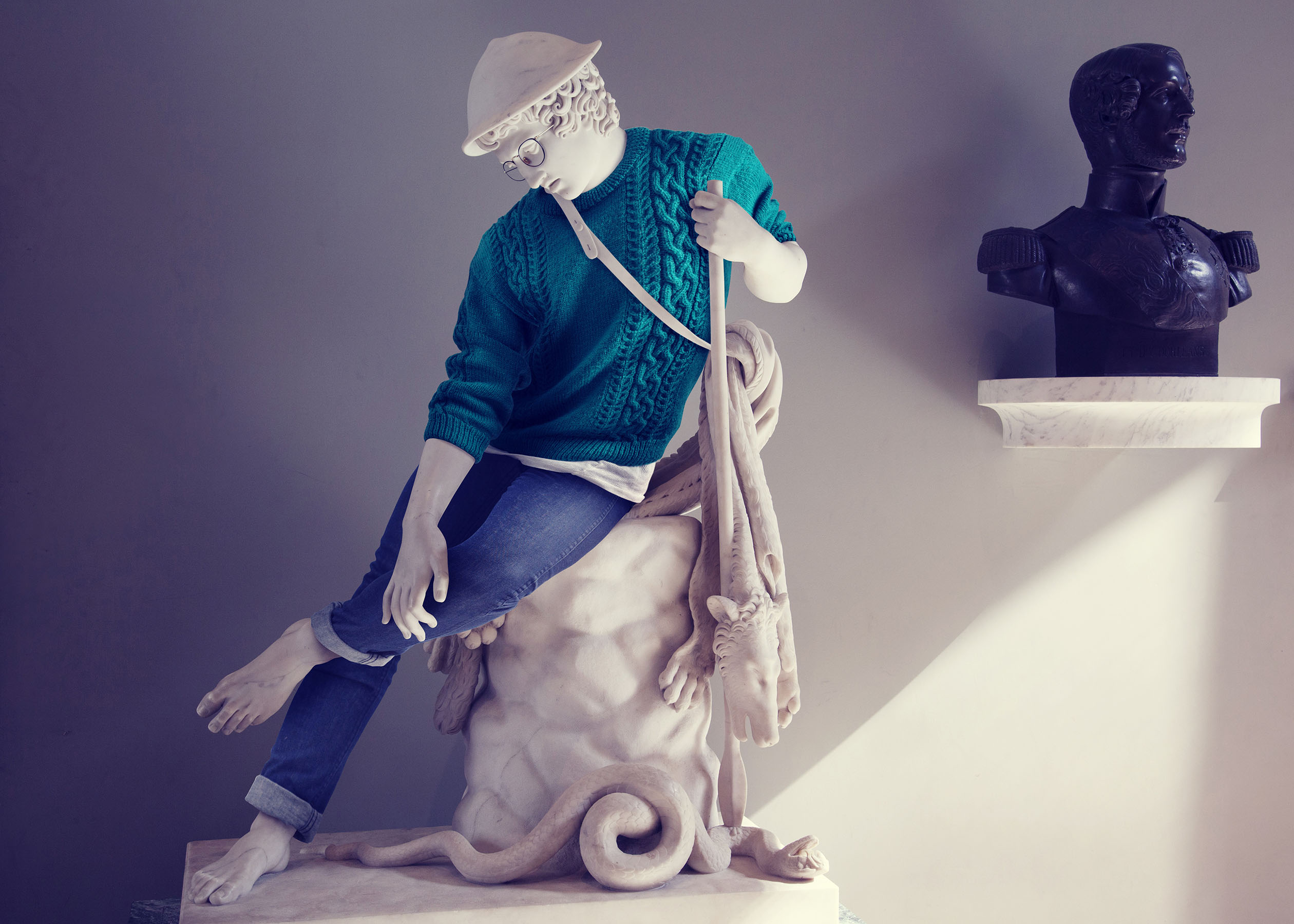 Sochy vyfotografoval a obliekol do typického štýlu zodpovedajúceho Brooklyn Bedford Avenue : vyhrnuté rifle, univerzitné bundy, košele, wayfarerky a podobne.