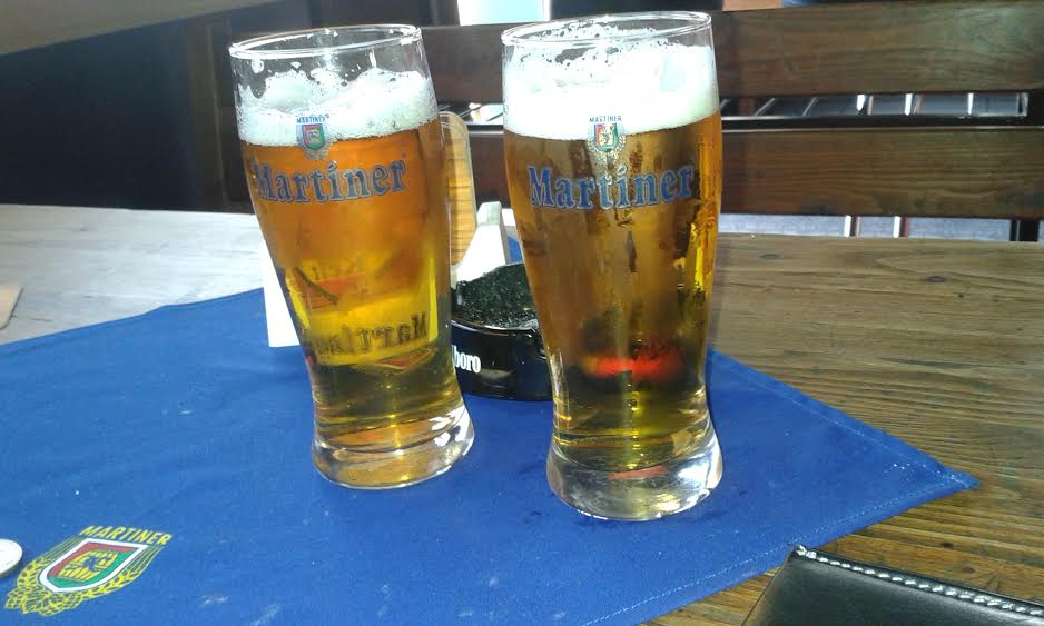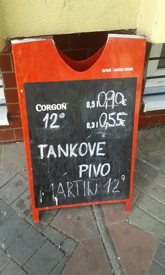 Dali sme si 2x tuzemák (0,65€/0,05l) 1×0,5l čapáčka martinskú dvanástku (ročník 1987-vyzretý. 0,90€) 2x pomaranč nápoj „fontána“ (0,40€/kus).